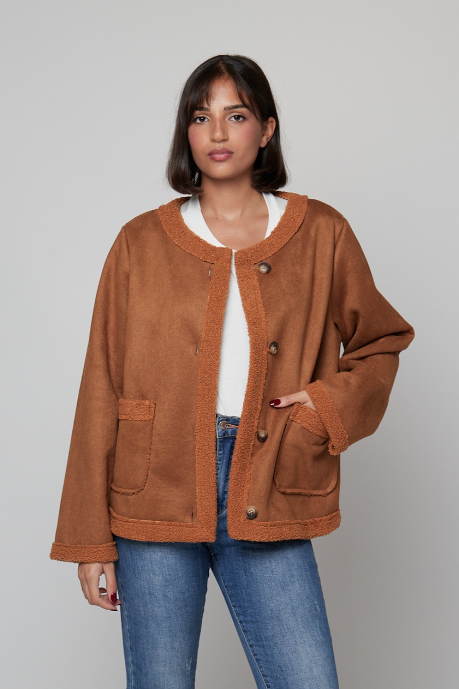Abrigo LOLA 004a prenda ideal para combatir el frío , forro interior en forma de borreguito pensada para no pasar frío ,super cómoda , diseñada para tu outfit más casual .