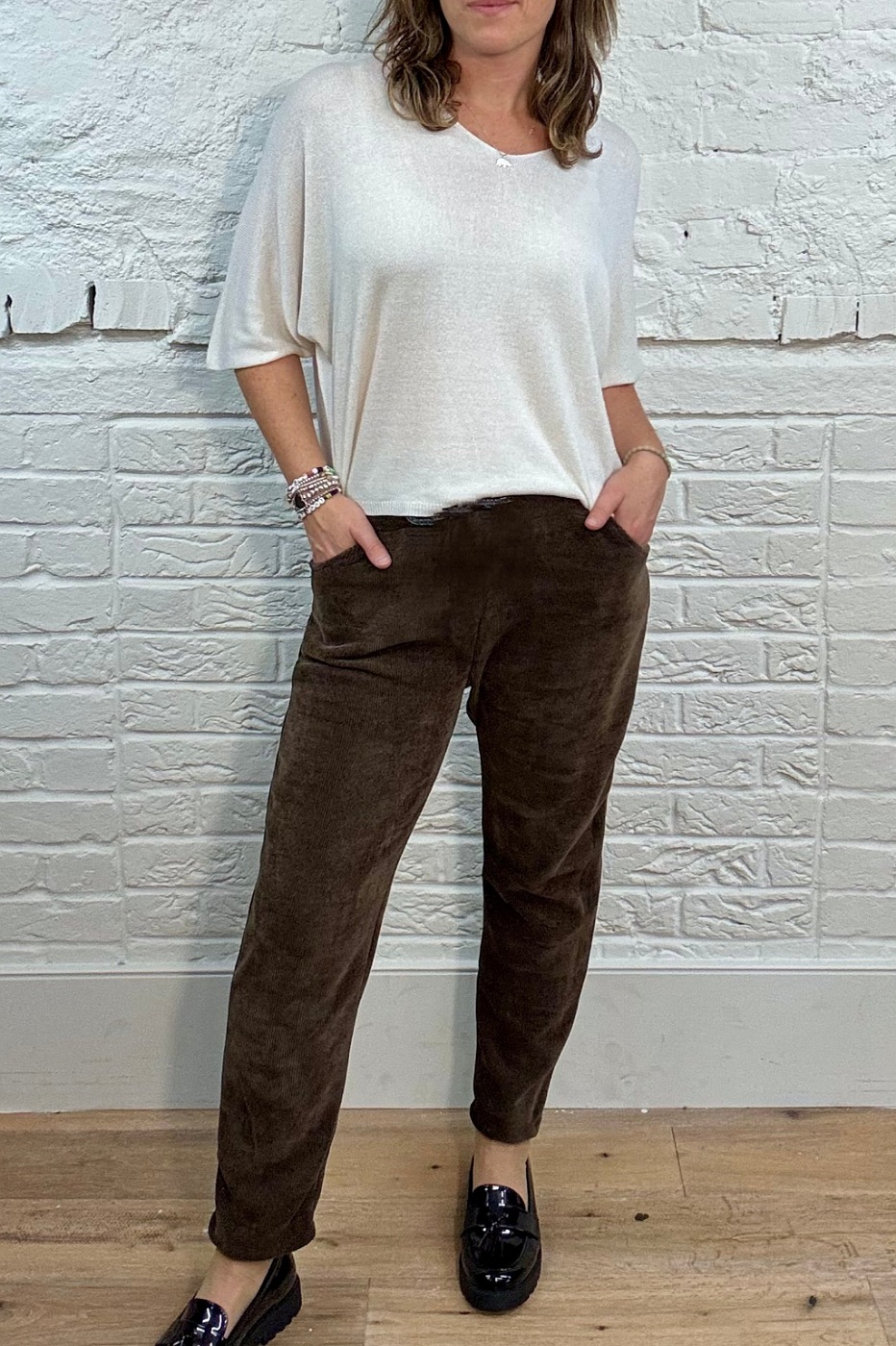 Pantalon LOLA 042p fabricado en tejido de micro pana hacen de esta prenda la ideal para los días fríos, una prenda cómoda y versátil ideal para todas las ocasiones .